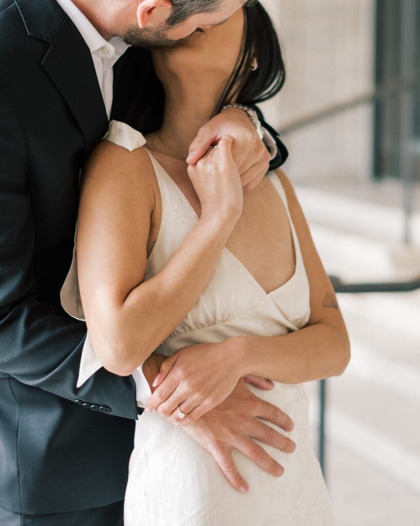On the other hand, formal outfits can add a touch of elegance and sophistication to your engagement photos. If you are planning a shoot in a more upscale location, such as a historic building, a fancy hotel, or a picturesque garden, formal attire can elevate the overall look.